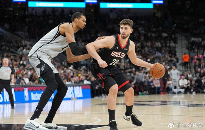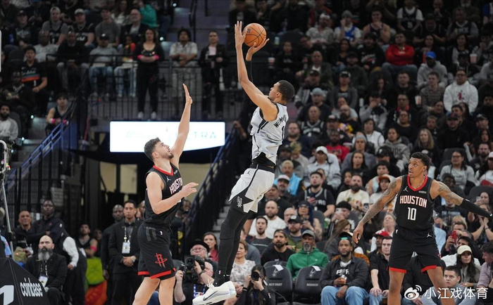 与申京直接对位的文班亚马,贡献29分8篮板1助攻4盖帽2抢断,没有出现失误,个人正负值高达+27,两人的数据放在一起对比,高下立判。事实上,别看申京运动战还是有12中7的进攻效率,这完全得益于裁判宽松的吹罚尺度,不然以他撅腚单打时,对着文班挥舞的铁肘开道打法,早就犯满离场了。同为新一代的内线全明星,申京相较文班亚马的差距,恐怕比这场比赛数据上的体现要大得多——文班亚马职业生涯共送给申京13次盖帽,后者是被文班送出盖帽最多的球员。