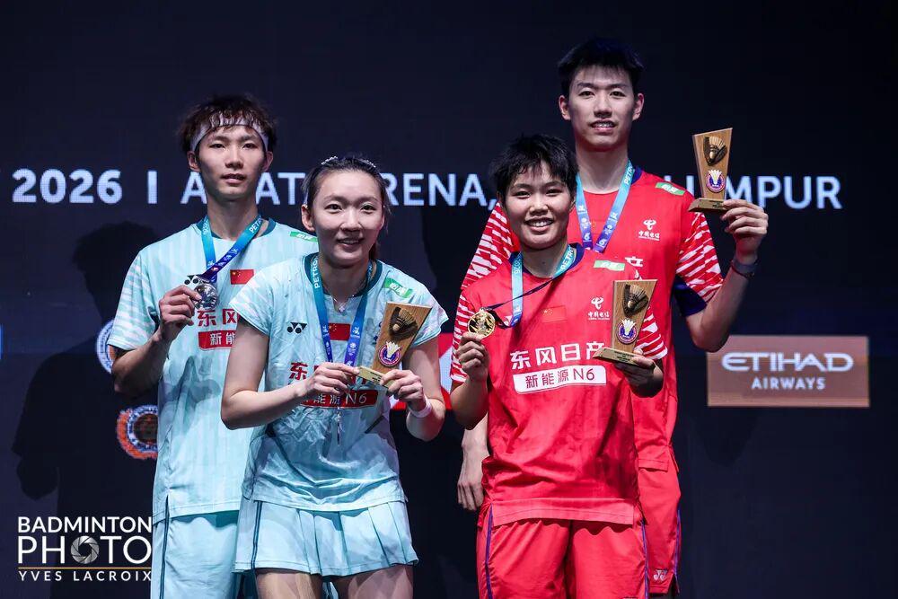 2026年新年第一站国际比赛马来西亚公开赛昨晚在吉隆坡结束,中国羽毛球队斩获两金三银,女双谭宁/刘圣书和和混双冯彦哲/黄东萍分别登顶,其中混双中国两对再次包揽冠亚军。
