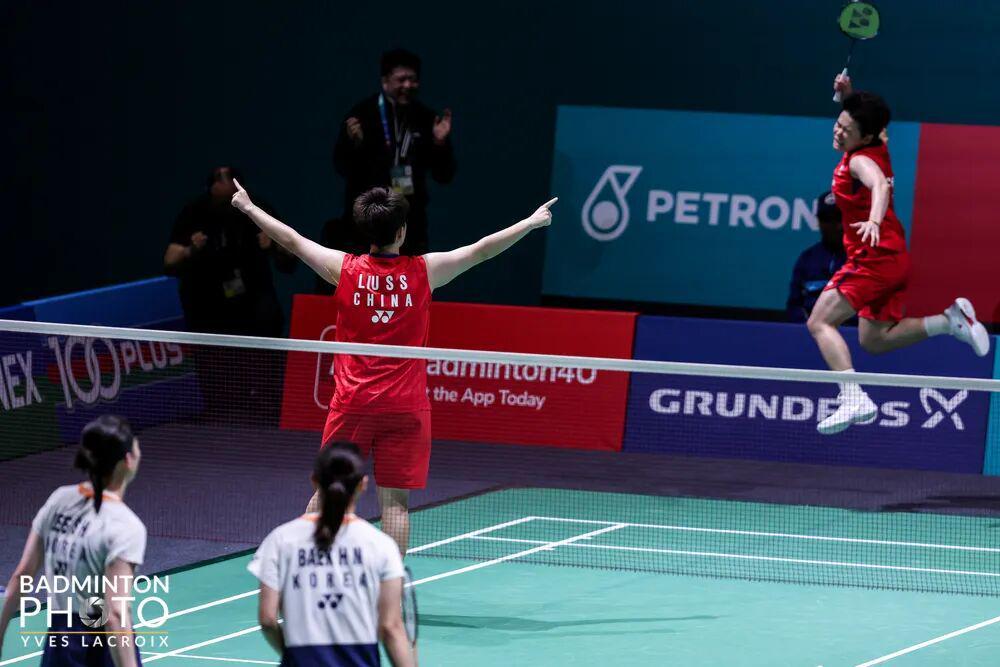 女双决赛在“圣坛”组合与韩国队“李白”组合之间展开,双方曾在上个月的杭州总决赛半决赛交手,“圣坛”组合在决胜局领先的情况下被逆转,无缘决赛。此番再战,“圣坛”组合铆足干劲,在第一局中局许多多拍回合中都坚持到最后,以21比18先下一城。第二局,“圣坛”组合一鼓作气,以21比12胜出,打出一场漂亮的“复仇仗”,成功夺下新年第一冠。